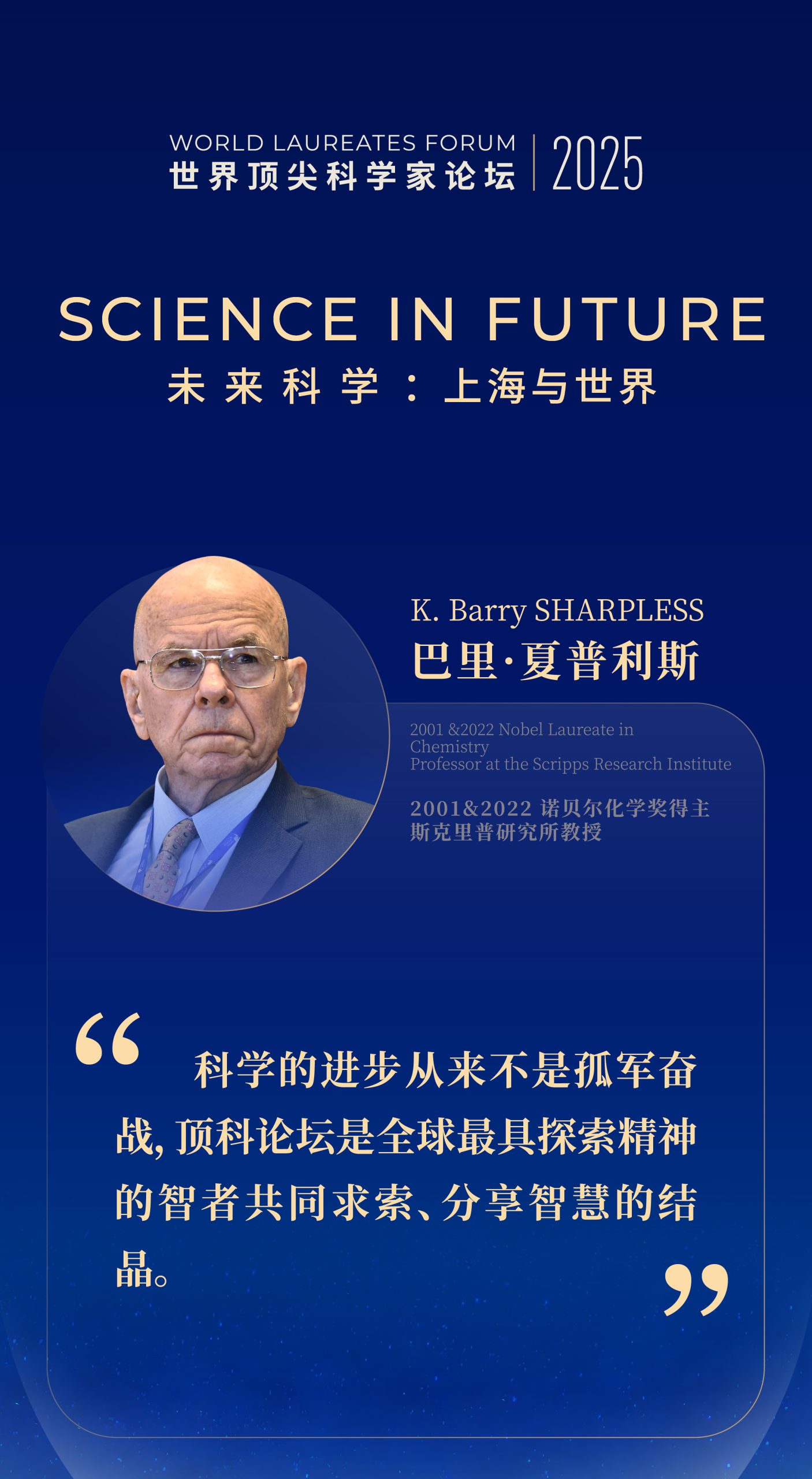 >回顾2025年世界顶尖科学家论坛,一个身影令人记忆犹新:巴里·夏普利斯(K. Barry SHARPLESS)教授,那位84岁却依然精神矍铄的双诺贝尔奖得主,戴着标志性的帆布帽,仿佛刚刚离开他热爱的实验室。作为历史上第五位两度荣获诺贝尔奖的科学家,他亲临现场,不仅是对论坛国际影响力的极高认可,更让我们深刻感受到,一场由“简单”哲学驱动的科学革命,正如何深刻地塑造着我们的未来。
