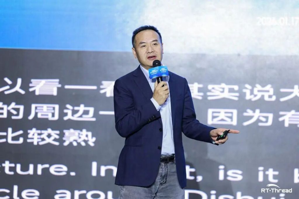 RT-Thread睿赛德联合创始人&工业事业部负责人邱祎在题为《从开源代码到生产力革命》的分享中,系统阐释了开源如何通过工程化、平台化与商业体系的持续完善,转化为可规模化落地的产业能力。他以“1+X+N”操作系统战略体系为例指出:以完全自主研发的RT-Thread睿赛德内核操作系统作为统一技术底座,通过高实时性、高可靠性、高安全性的架构能力,支撑工业、汽车、通用等核心领域的多样化解决方案,并在能源、电力、轨交、航天、机器人等高端制造场景中持续落地。这一战略不仅标志着国产嵌入式操作系统从“单点产品”迈向“平台型生态”,也推动RT-Thread从社区驱动的技术创新,进一步演进商业并举的基础软件体系。