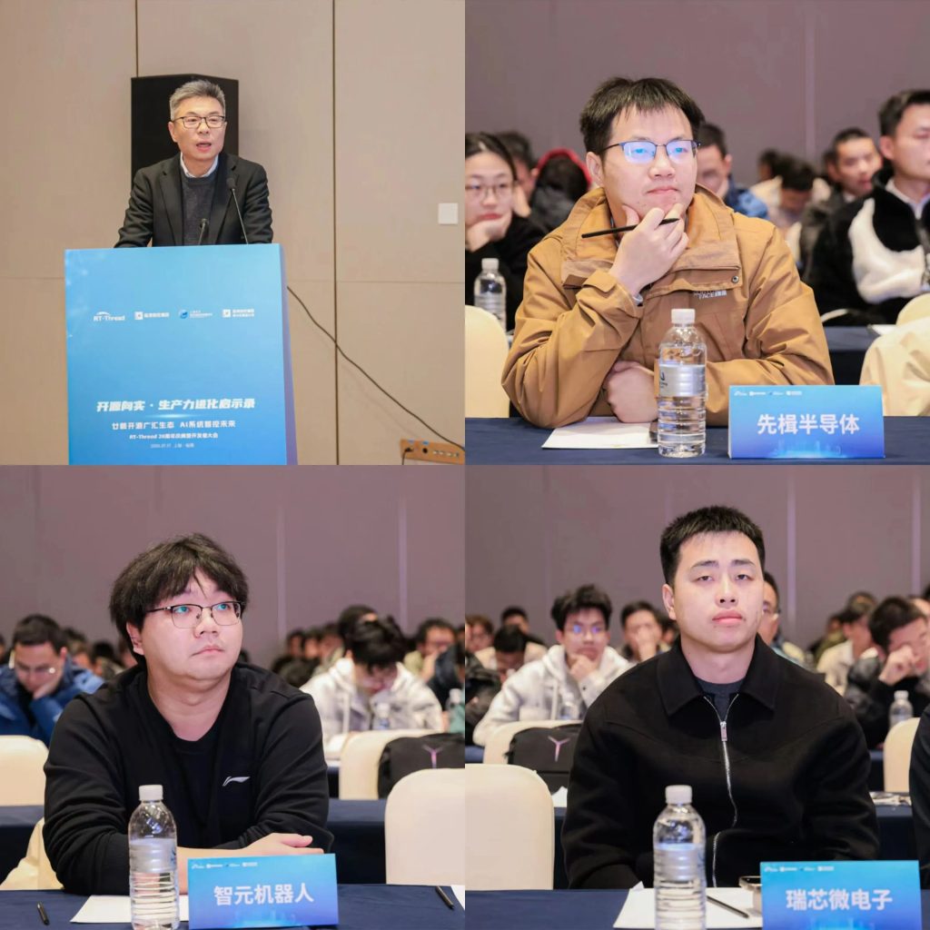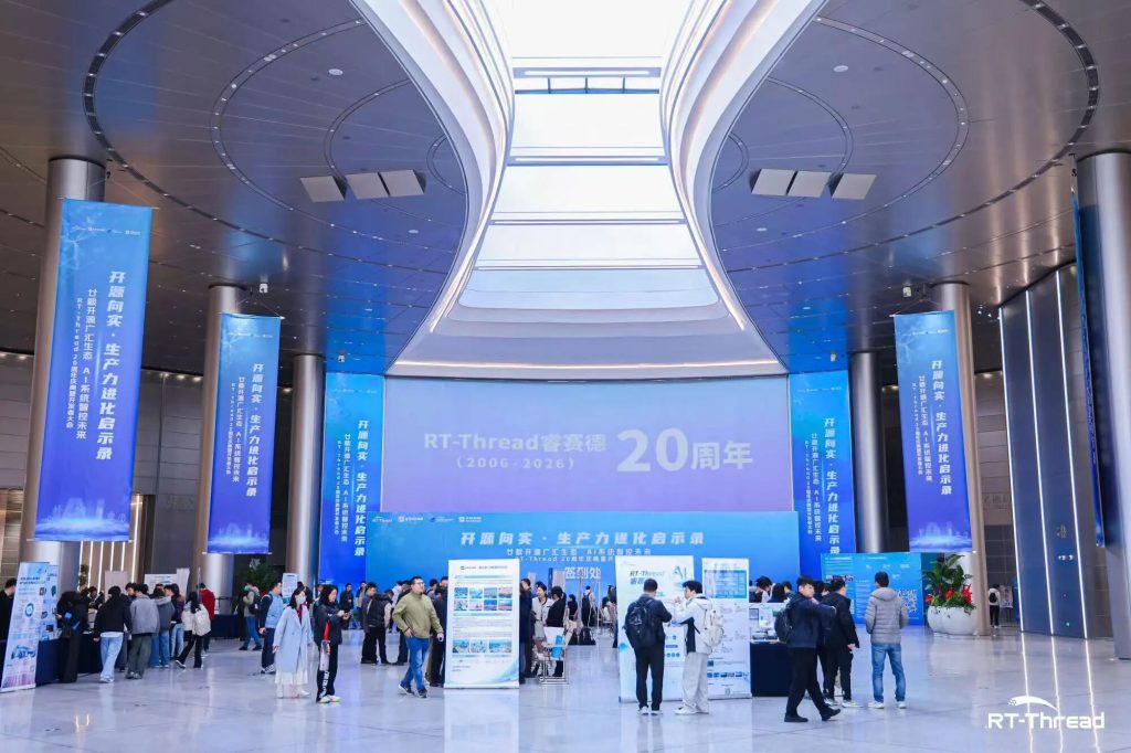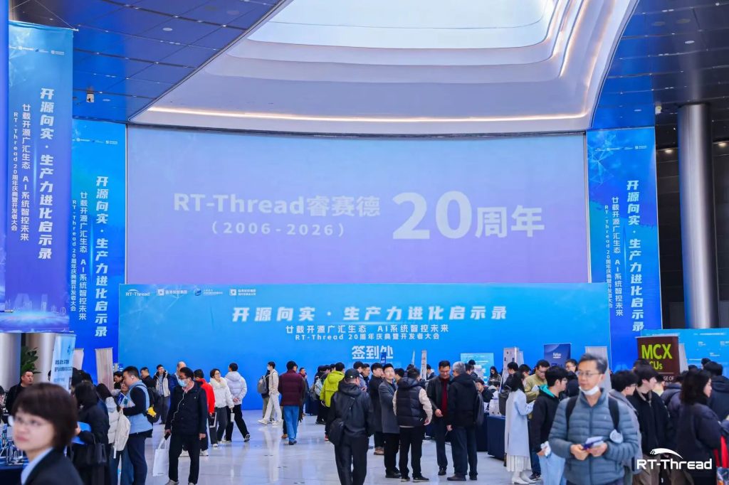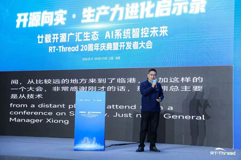 2026年 1 月 17 日,“开源向实·生产力进化启示录”全球峰会暨RT-Thread睿赛德二十周年开发者大会在沪举行。本次大会由RT-Thread睿赛德、上海临港科技创新发展基金会、临港投控新片区基金公司联合主办,汇聚政府领导、中国工程院院士、国内外知名企业代表、全球核心开发者、技术管理者,来自芯片、工业、汽车、机器人、能源、通信等多个领域上千名产业、技术代表参加了活动。