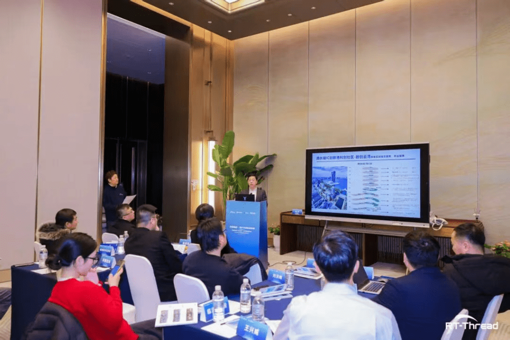 多位基于RT-Thread社区成长起来的创新创业项目进行了路演,多家基金公司和投资公司现场和项目负责人进行了交流;同时,有众多OPC出席了会议,和临港投控集团的相关负责人进行了多方面的交流,深入了解临港、投控集团在推动科创蓬勃发展的多元助力,探讨如何借助金融与资本力量,打通从技术创新到规模化落地的“最后一公里”。