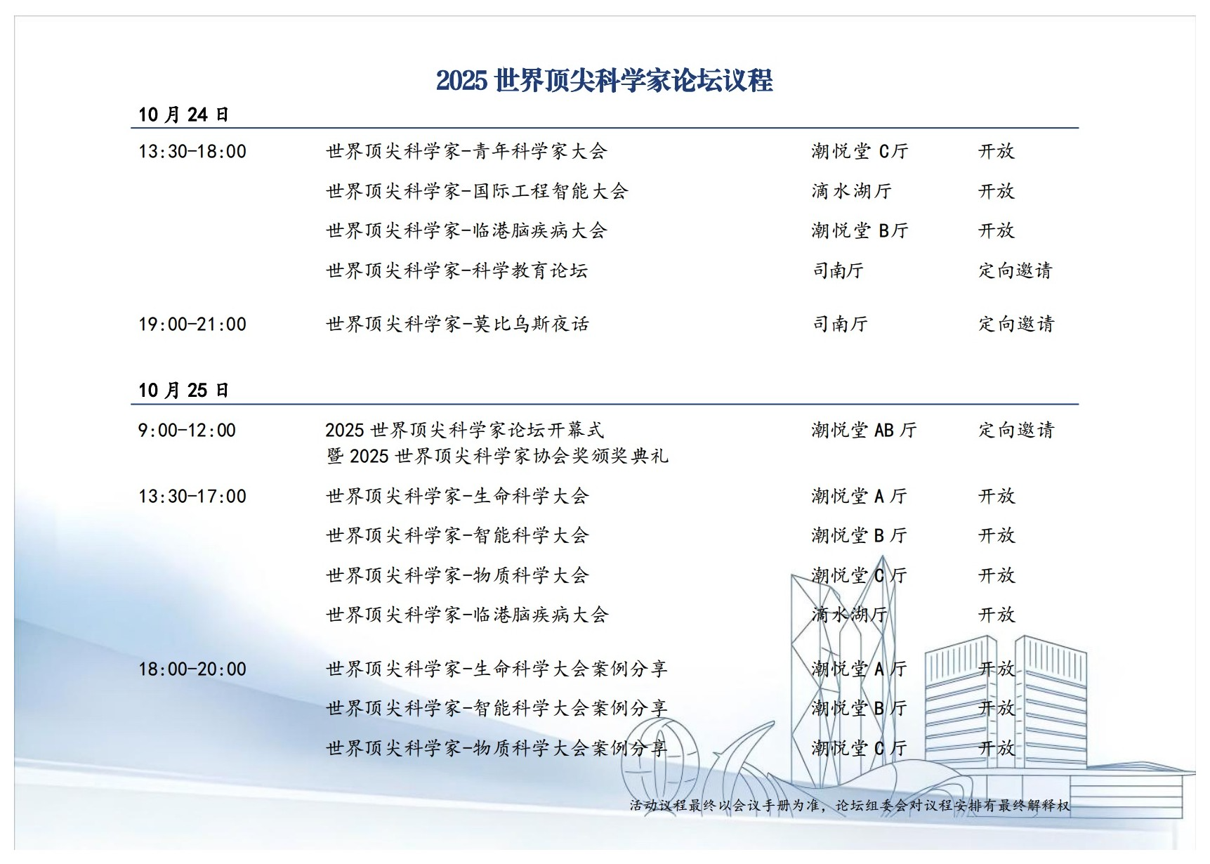 上海临港科技创新发展基金会诚挚邀请您参加2025年世界顶尖科学家论坛。