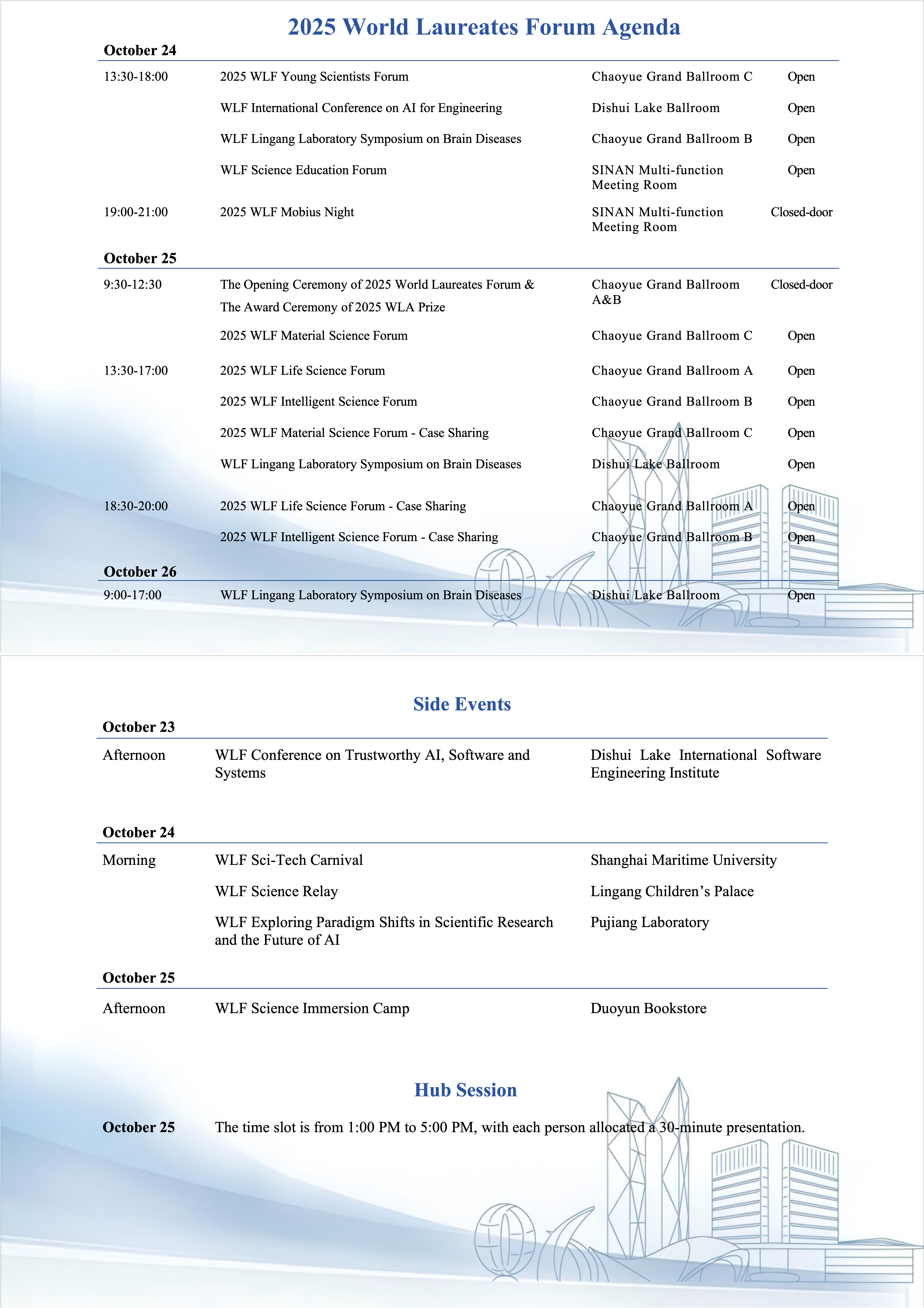 The Shanghai Lingang Science and Technology Innovation Development Foundation cordially invites you to attend the 2025 World Laureates Forum (WLF).